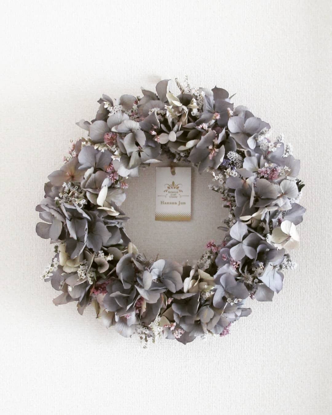 紫陽花3種類、リモニューム、ユーカリ、エリンジューム、デュモサなど使用。