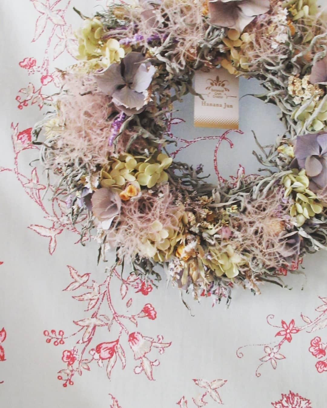 お茶や藁のような香り、近づくとハーブの香りを感じて頂けますが、香りもリースの色合い同様落ち着いていきます。