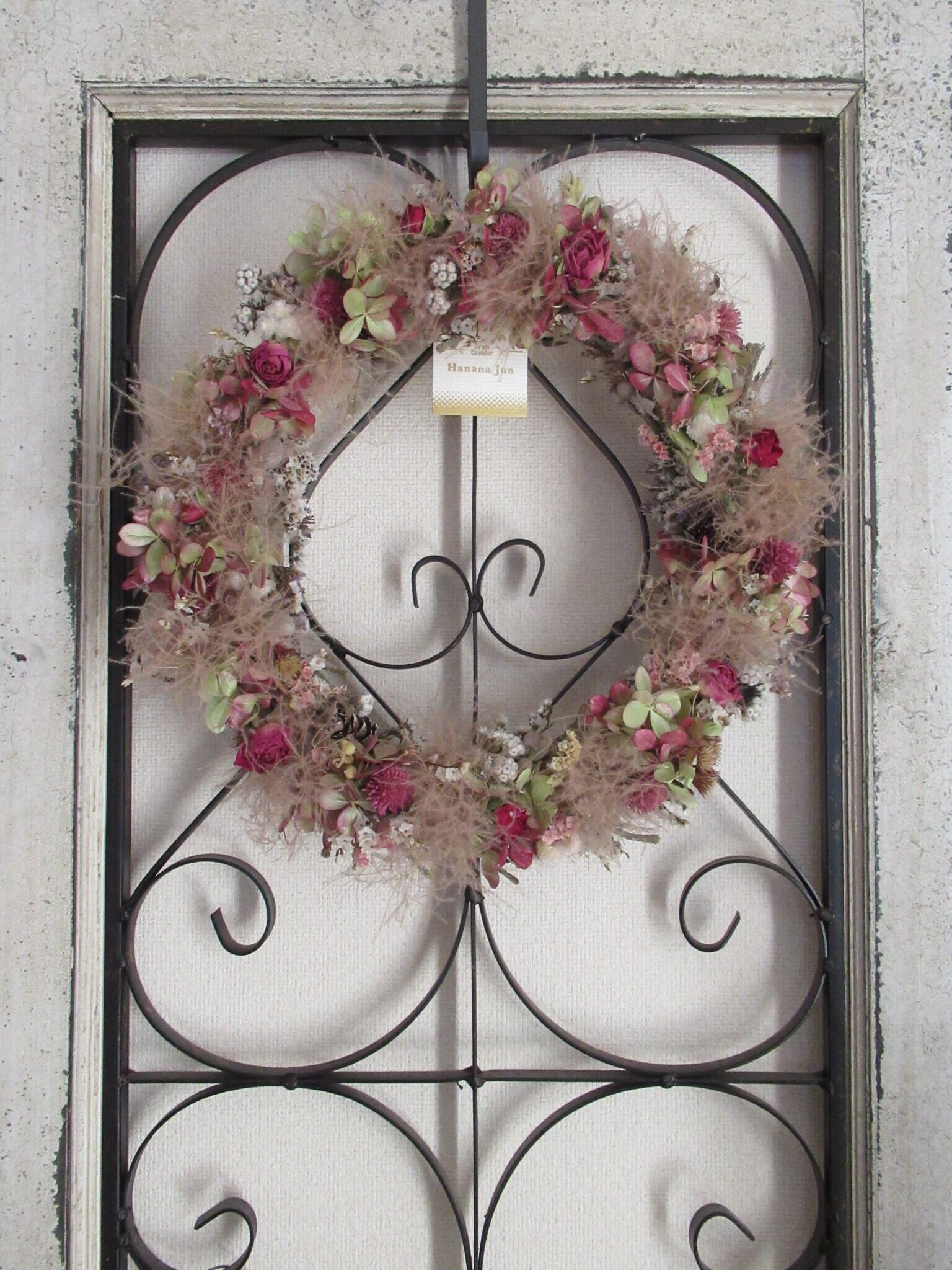 ふんわり温かな印象のリースは、アンティークな色合いに変わっていきます。ごいっしょに時の流れをお楽しみください。